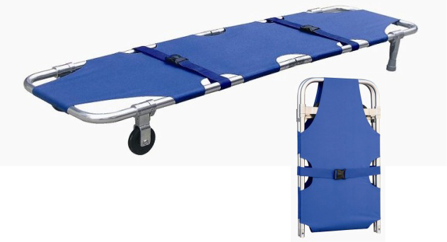 Detailed Product Description: This foldable stretcher with wheels, outriggers and can be folded. Foldable stretcher is made of high strength aluminum alloy material and the water-tightness leather materials. Foldable stretcher has characterizes of light-weighted, small-sized, easy-carried, reliable quality, use-safely and easy for sterilization, etc. Foldable stretcher is suitable for saving and transferring the patients and wounded under all circumstances, especially suitable for emergency department in hospital and the ambulances.