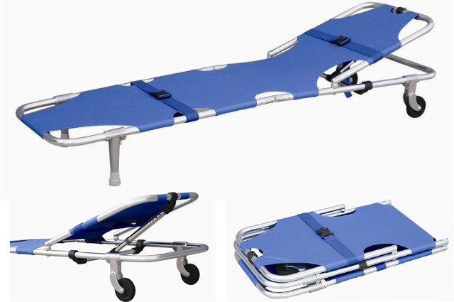 Detailed Product Description: This foldable stretcher with wheels, outriggers and can be folded. Foldable stretcher is made of high strength aluminum alloy and the water-tightness leather material. The back of this foldable stretcher can be lifted, and the maximum angle is 60. Foldable stretcher is characterized by its being fashionable structure, light-weighted, easy-carried, use-safely, reliable quality and easy for sterilization. Foldable stretcher is commonly used in hospital, gymnasium, ambulance, army hospital to carry the patients and the wounded.