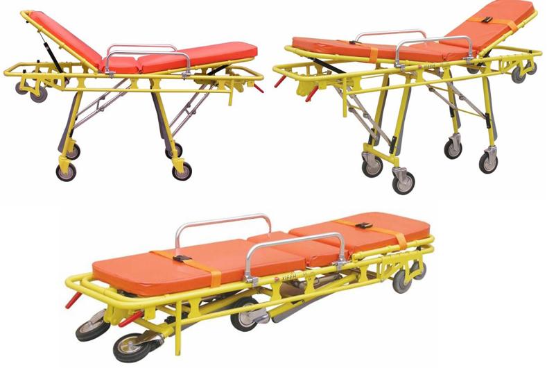 This ambulance stretcher is our new designed product; it is made of steel. The ambulance stretcher' surface is made of foamed cushion and the adjustable back, making the wounded feel comfortable. The ambulance stretcher is very convenient; one person is enough to send the patient (with this stretcher) to the ambulance car. The mechanical foldaway legs are controlled by the handles on one end of the stretcher. And the legs can be folded under the stretcher automatically when loading into the vehicle. Also the ambulance stretcher can be locked by the fixing devices when on the ambulance car. This ambulance stretcher is characterized by its durable, safe usage and easy for sterilization.