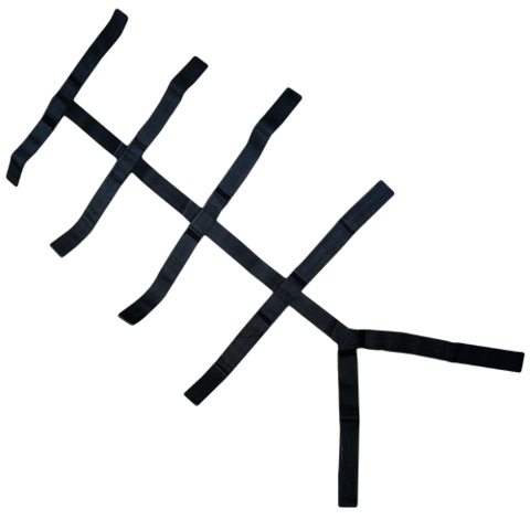 The Safetymed Economy Strap System allows for fast and firm, total body immobilization. This spider strap system features two "suspender" type over-the-shoulder straps, non-choking "V" near the patient's neck, 4 adjustable torso/limb straps with adjustable center strap, and black polypropylene webbing with Velcro closures.